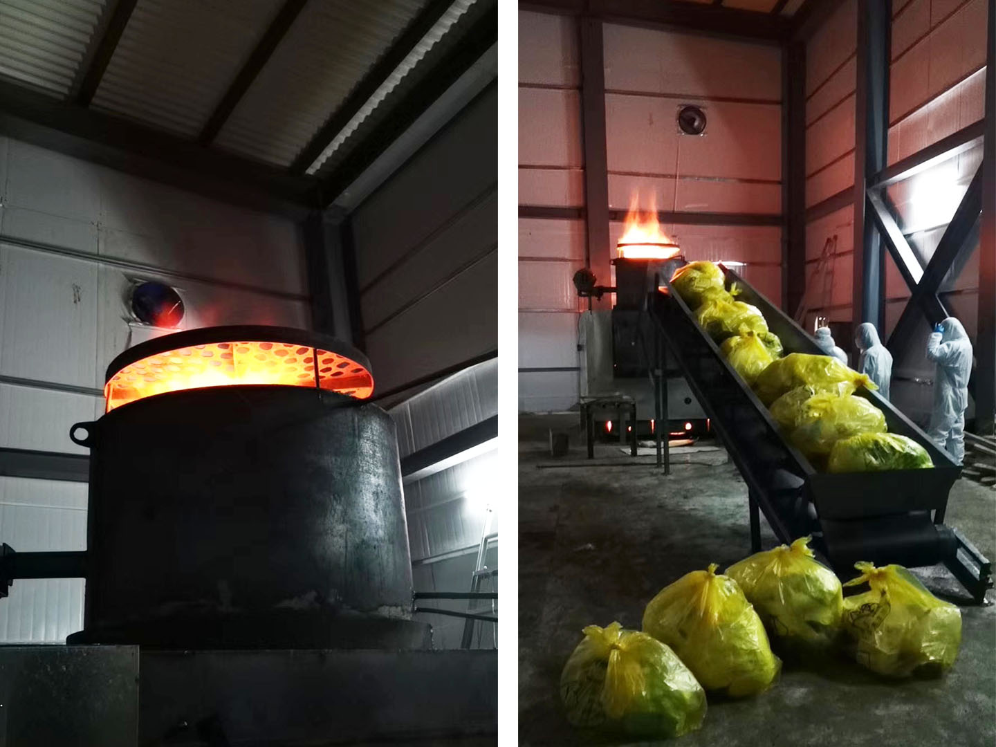 2月12日,雷神山第一批医用垃圾产生,工作由建设转向运营。工人全副武装,将送来的垃圾入暂存间,用C波段紫外线消毒,接着上皮带轮入裂解炉焚烧,最后人与机械、工具消毒,小心翼翼按工艺流程与步骤运行。