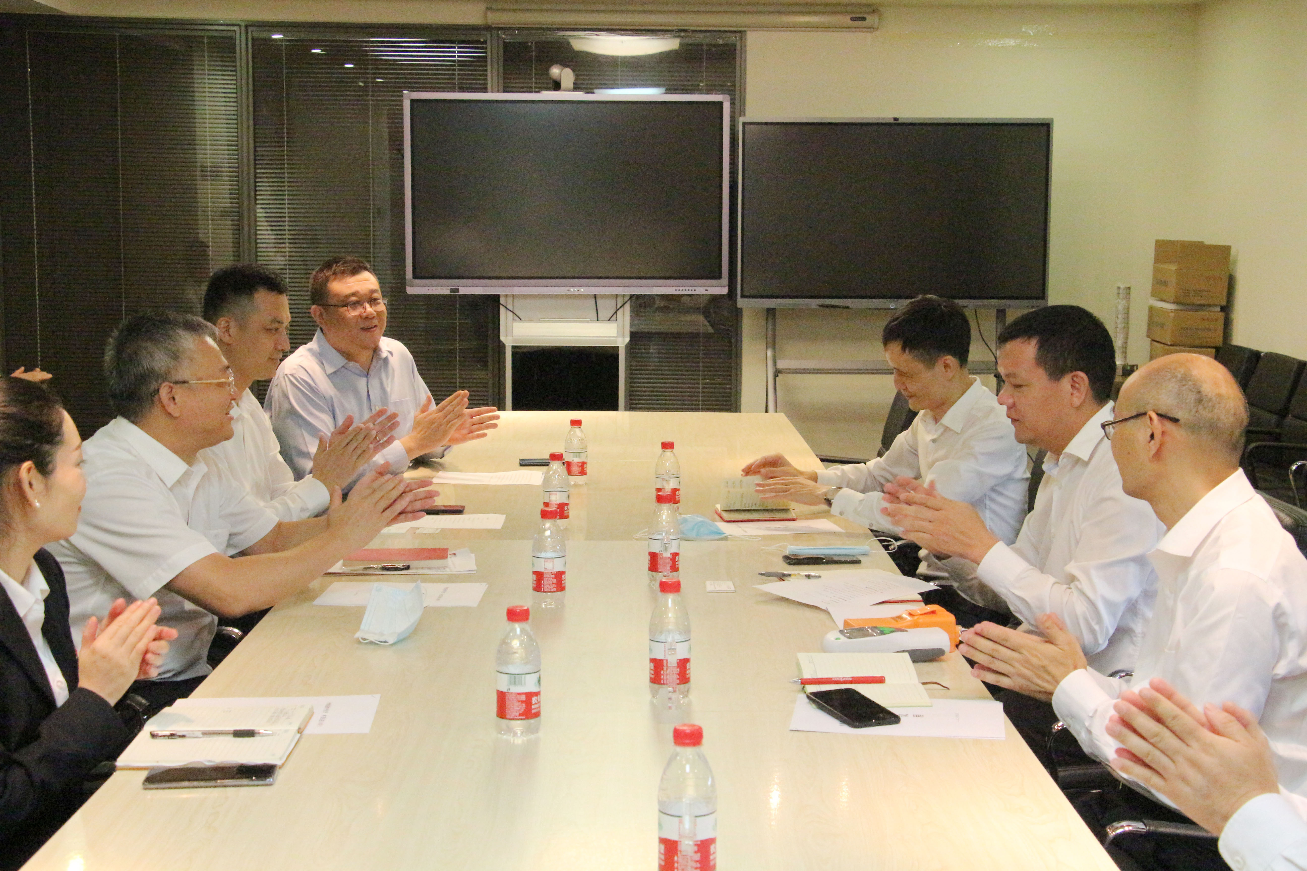 嘉力达事业部总经理李东鹏向各位了领导介绍了嘉力达公司,以及嵌入式净化消毒器产品。并转达了嘉力达董事长李海建希望通过华侨城集团,向武汉华侨城玛雅嘉途酒店捐赠一批净化消毒装置的心愿,以对酒店在疫情期间,自发、主动、全力以赴地做好外省和武汉当地医护人员的后勤保障工作表示致敬!同时希望在《华侨城&启迪控股战略协议》的基础上,双方互帮互助,长远合作。