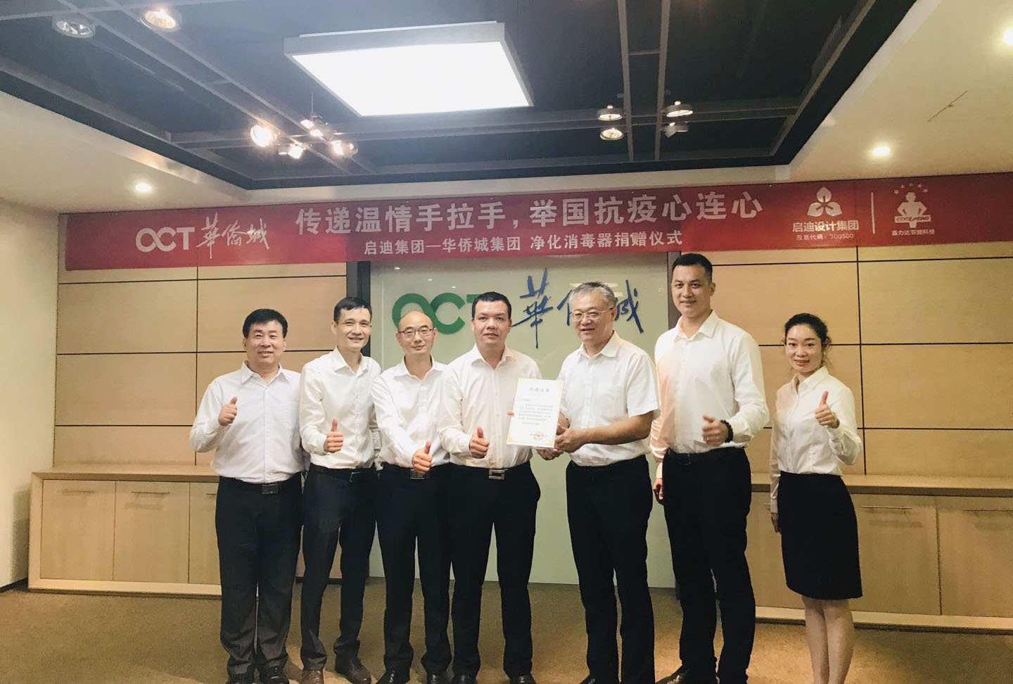 传递温情手拉手 举国抗疫心连心 启迪设计集团—华侨城集团净化消毒器捐赠仪式